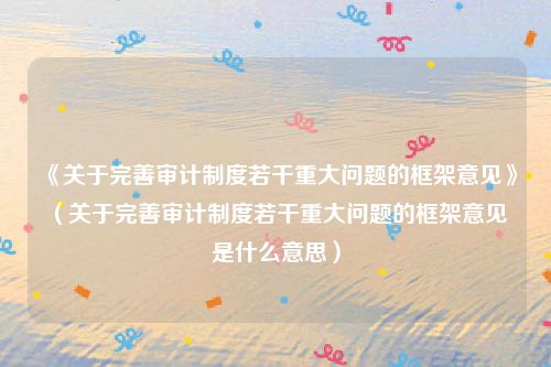 《关于完善审计制度若干重大问题的框架意见》(关于完善审计制度若干重大问题的框架意见 是什么意思)