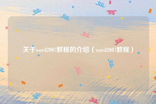 大家好,小编可心来为大家解答这个问题。word2007教程,关于word2007教程的介绍很多人还不知道,现在让我们一起来看看吧!