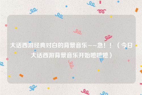 大家好,今天就和丹尼一起来看看这个问题吧 。大话西游背景音乐开始噔噔噔,大话西游经典对白的背景音乐~~急!!很多人还不知道,现在让我们一起来看看吧!