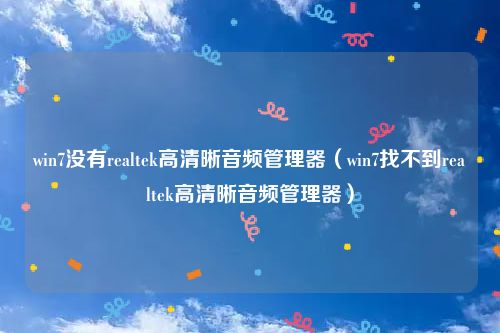 win7没有realtek高清晰音频管理器(win7找不到realtek高清晰音频管理器)